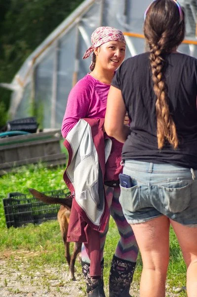 Vane, K1 and K2 bringing in the lettuce one morning ,photo by Adam Ford