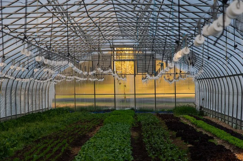 the tunnel with most of the remaining greens to harvest during the spring season, photo by Adam Ford