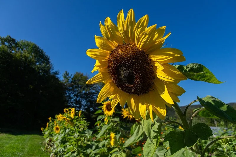 the lower sunflower looks like a muppet sunflower, photo by Adam Ford