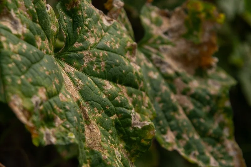 cucumber leaves with disease... these plants did so well this season, photo by Adam Ford