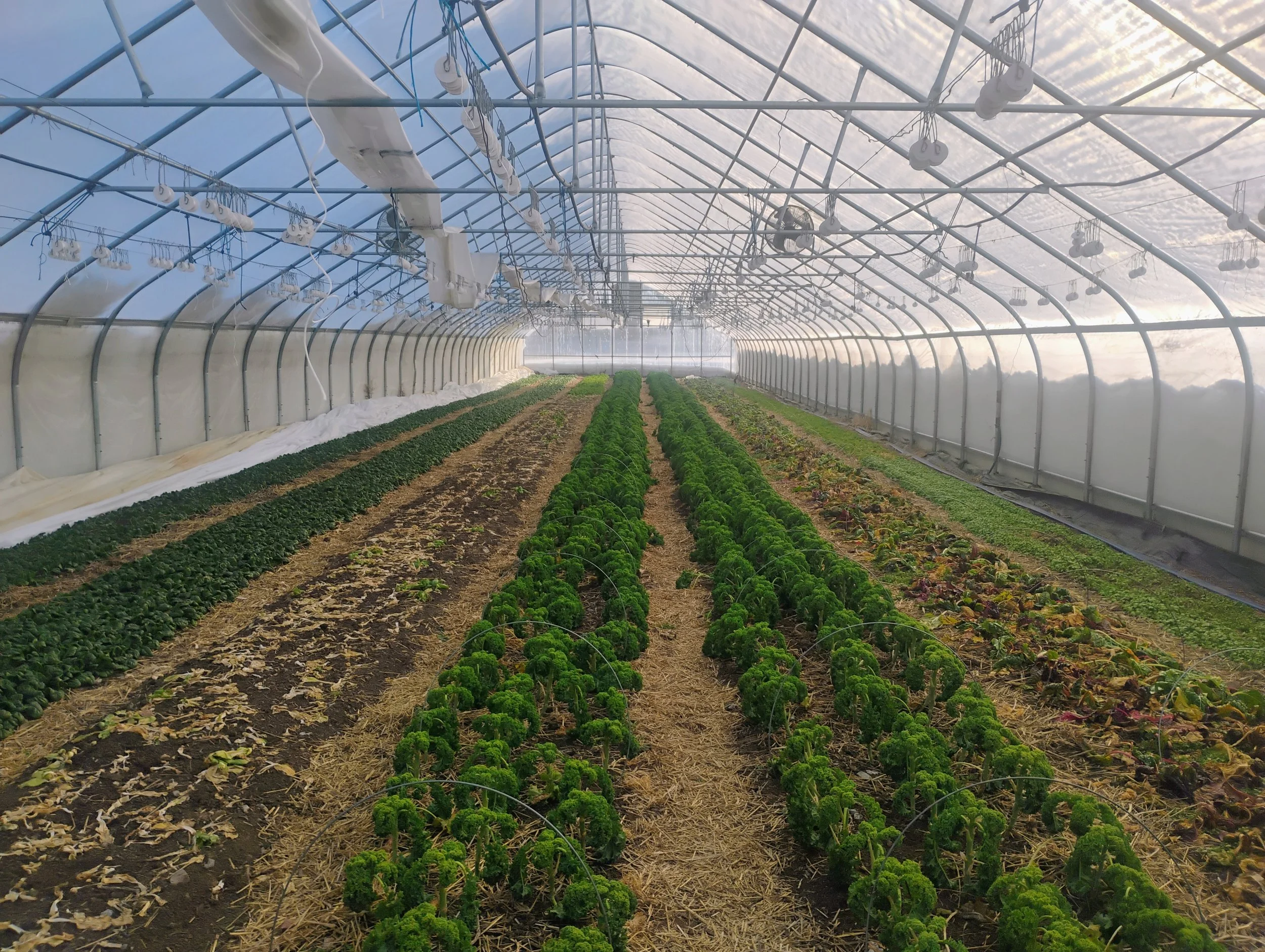 the greens always grow bigger at the tops of the tunnel where the cold air is sinking away from, photo by Kara