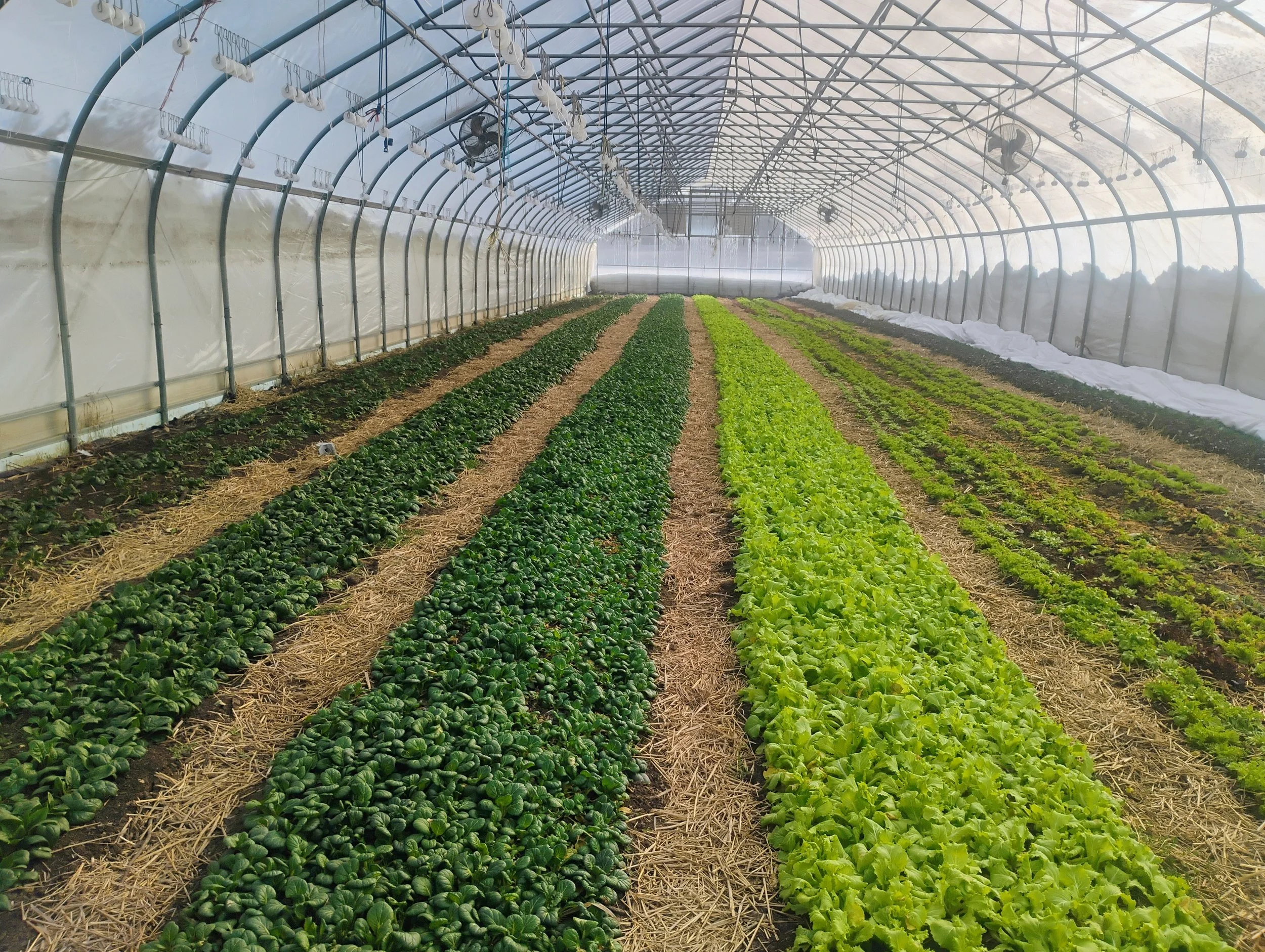 this tunnel has the greens for the mesclun mix blend: tokyo bekana and tat soi, photo by Kara