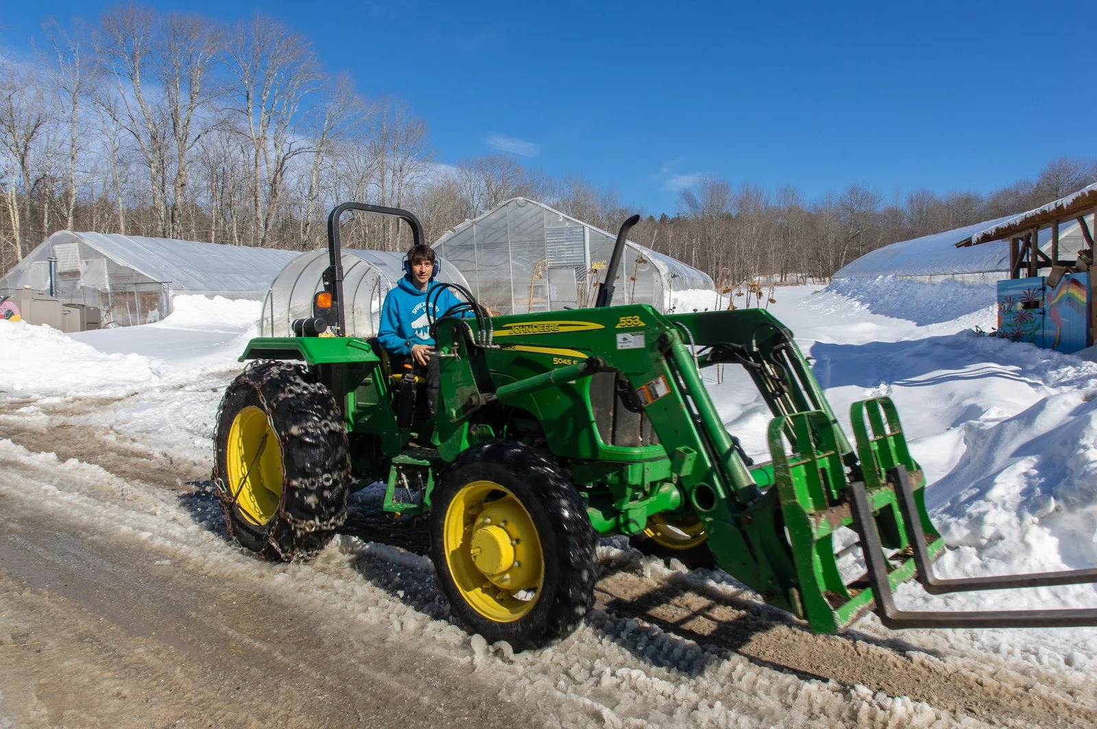 Ryan driving the tractor, photo by Adam Ford