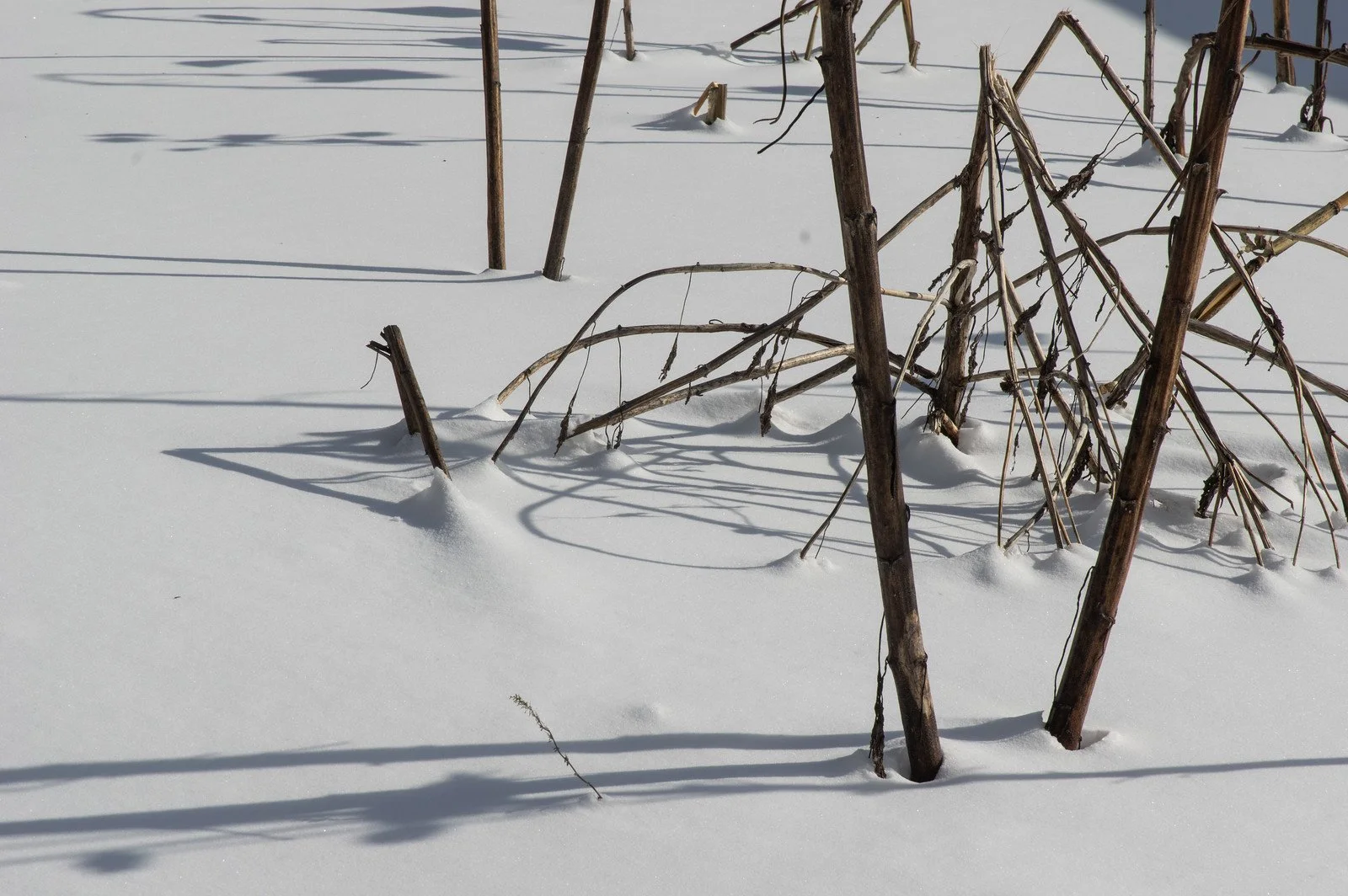Sunflower stalks in the snow, photo by Adam Ford