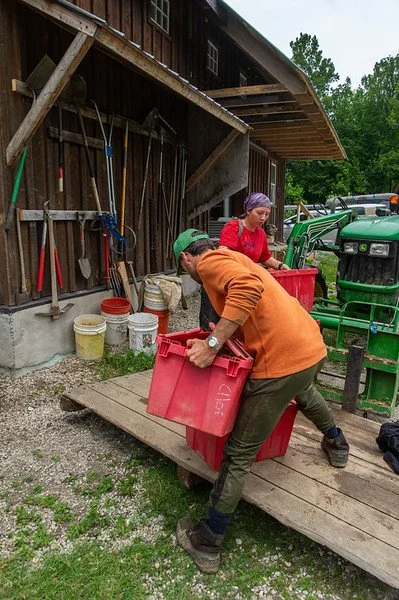Bryan and Vanessa unloading the end of the harvest from the pallet, photo by Adam Ford