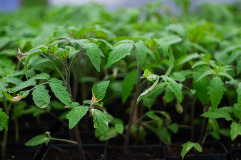 some tomatoes are growing out sunscald from the transition from grow lights to sunlight, photo by Adam Ford