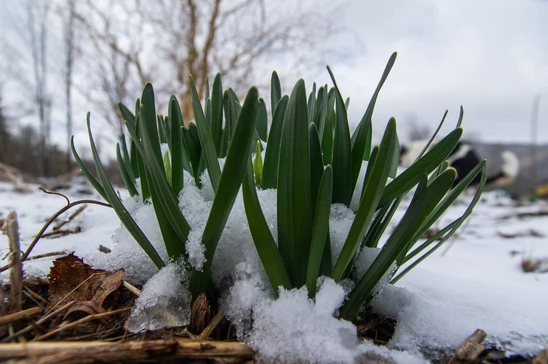 overwintered onions still cozily tucked in, photo by Adam Ford