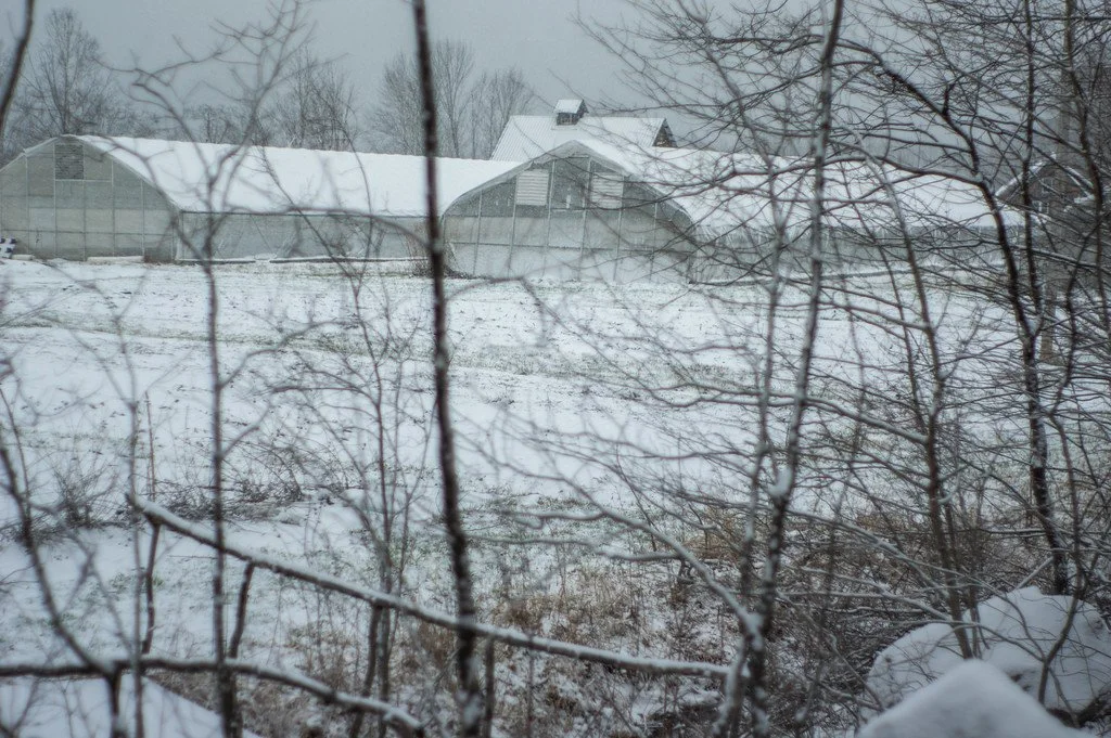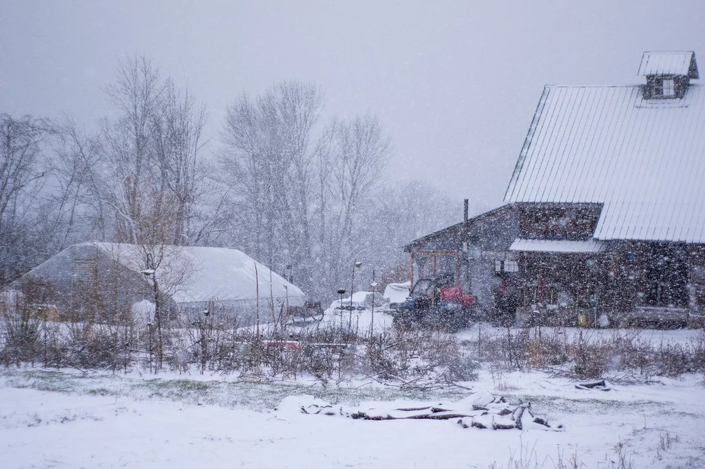 snowy scenes on a Tuesday, but it’s bright and green inside that prop house on the left, photo by Adam Ford