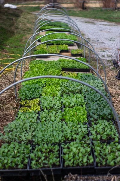 transplants hardening off outside the prop house before transplanting, photo by Adam Ford