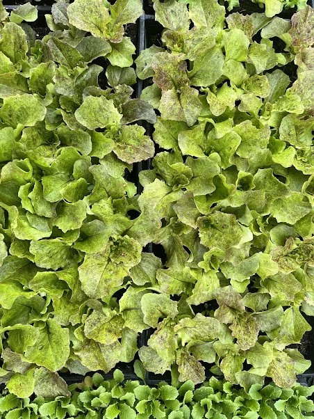 trays and trays of head lettuce transplants, photo by Adam Ford